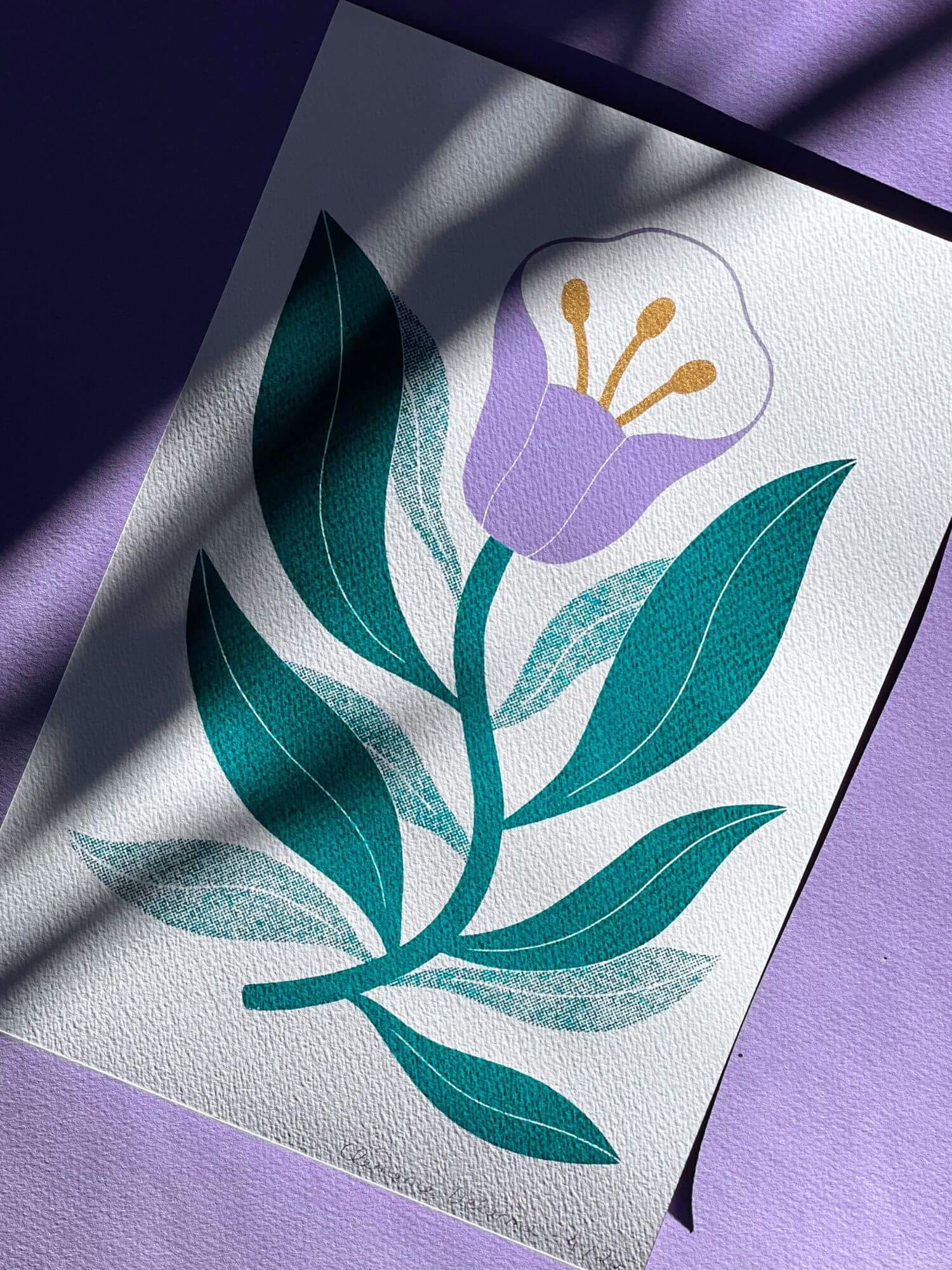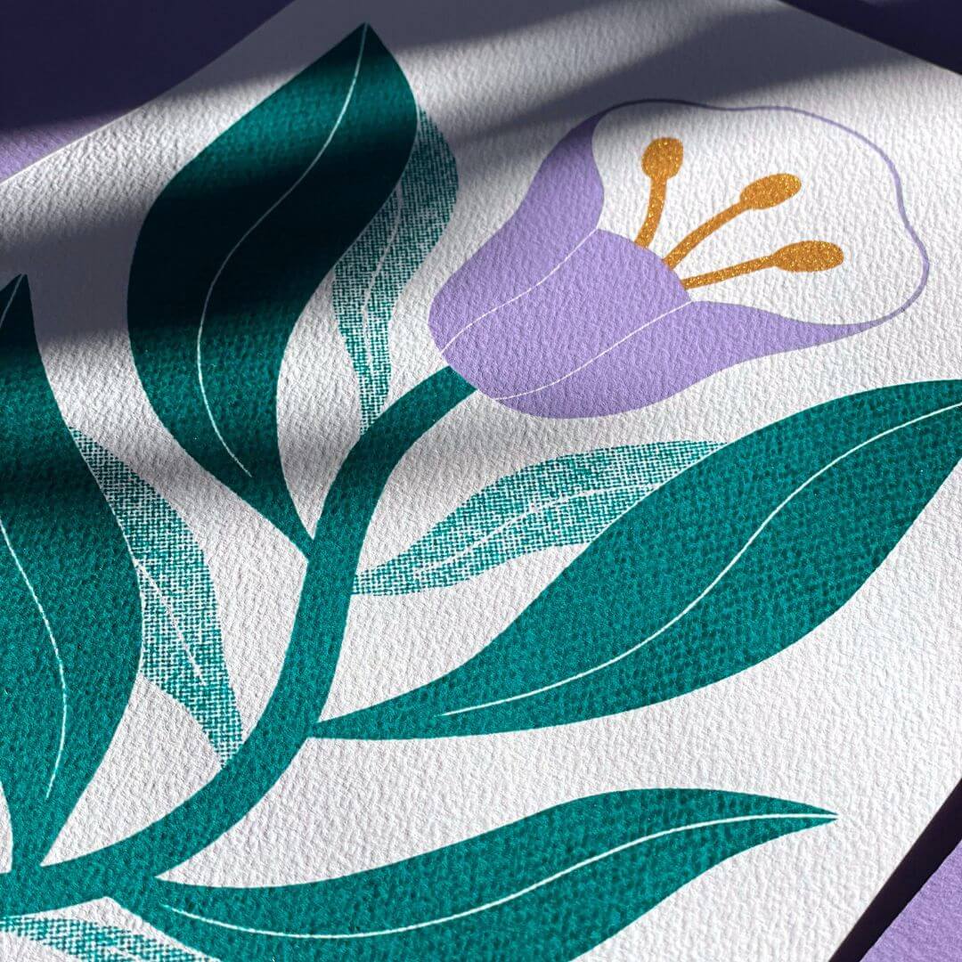 Illustration limitée en Sérigraphie A4 - Fleur violette